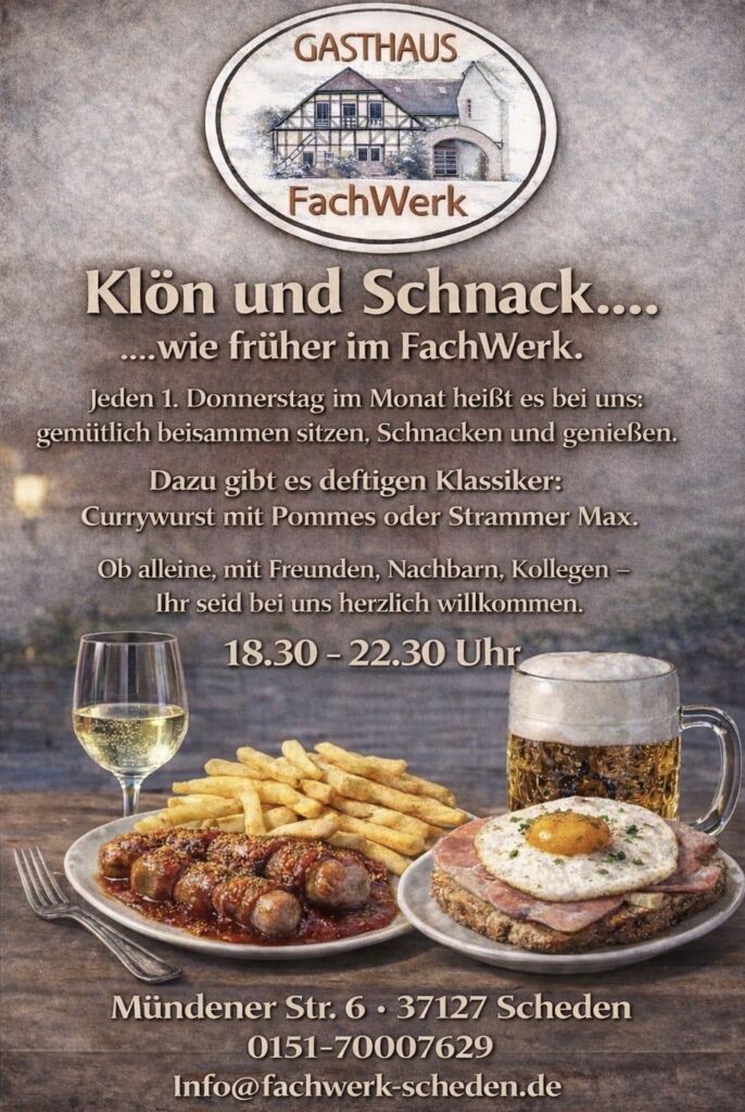 Aktuelles In diesem Frühjahr gibt es keine Suppe mehr, wir starten wieder im Herbst 2026! Schnitzel / Grünkohl oder Klön & Schnack.. für alle ist etwas dabei! Montags-Freitags jeden Morgen frische Brötchen im Verkaufsautomaten