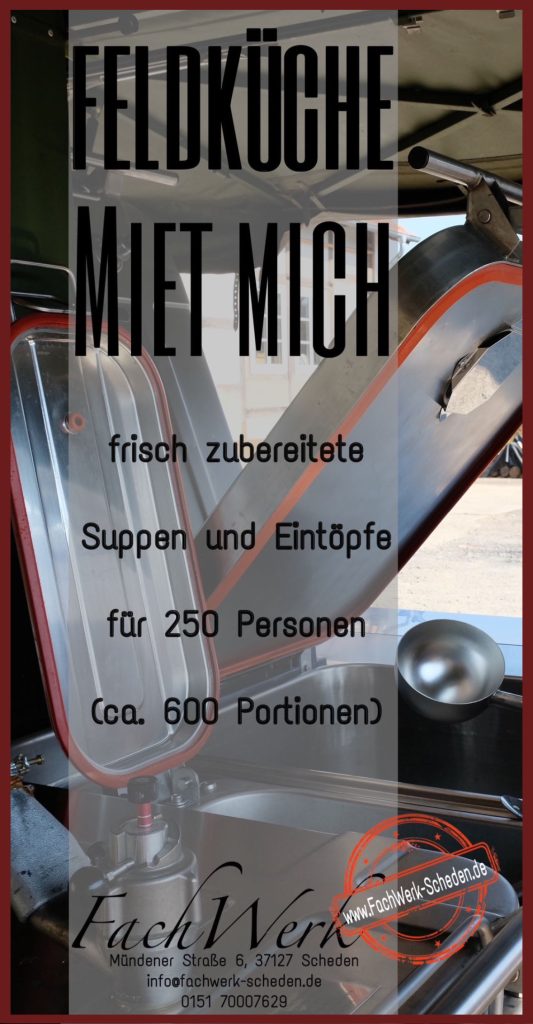Mit unserer Feldküche können 250-600 Personen versorgt werden.